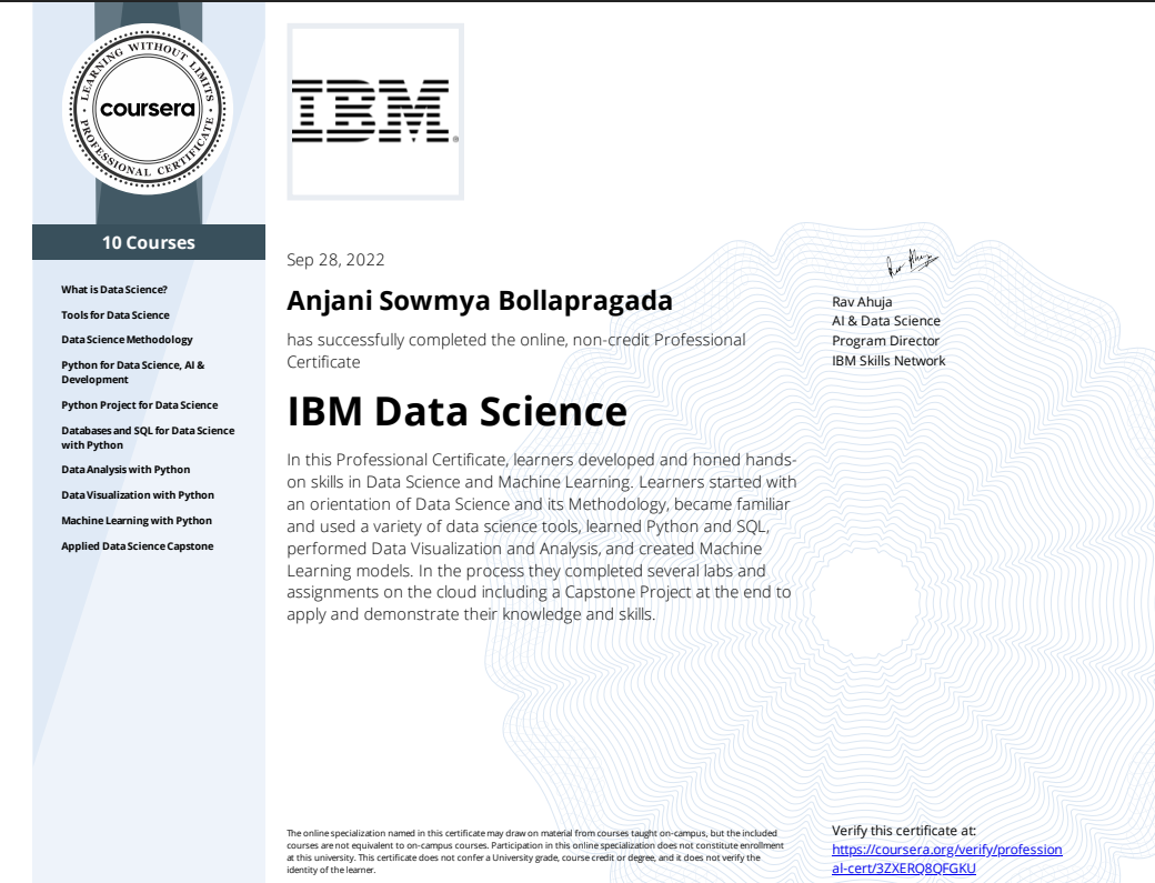 IBM Data Science Professional Certification