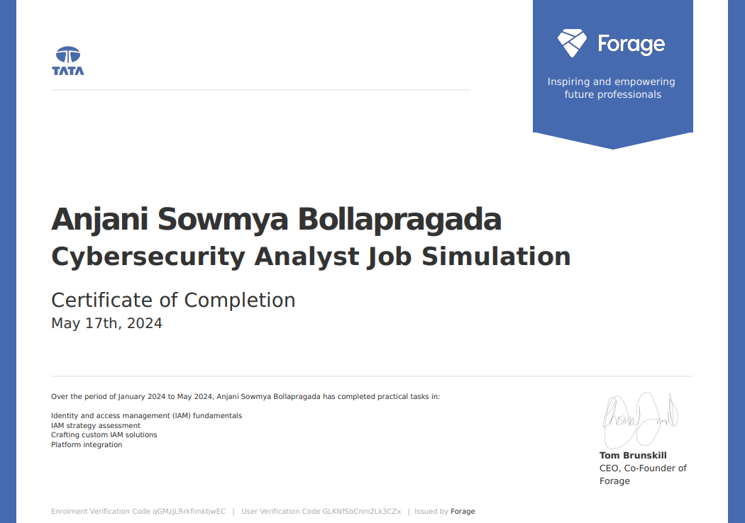 Cyber Security Analyst Job Simulation Certification